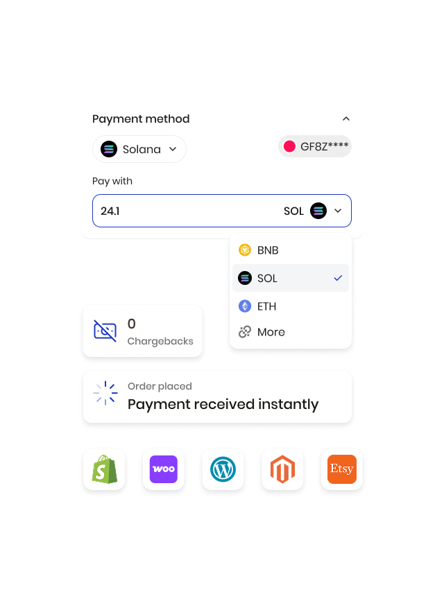 Instantly connect your store to over 560 million crypto owners worldwide. More payment options mean higher conversion rates and new revenue streams.